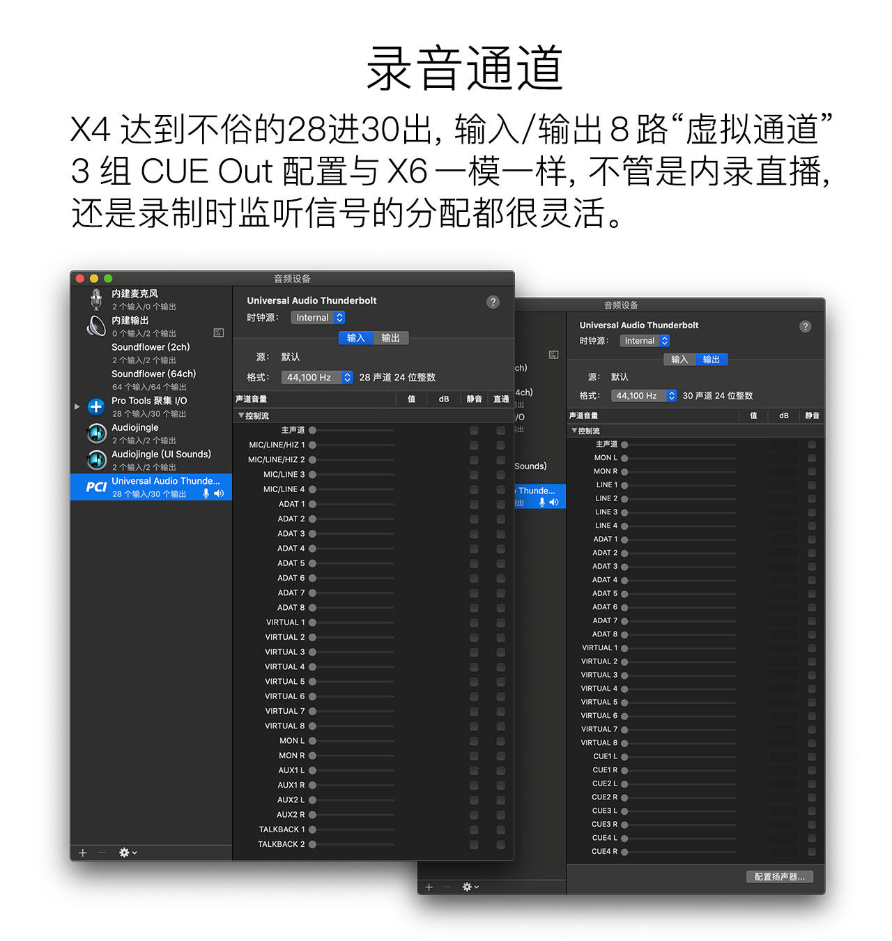 X6 注重 I/O 与多核心后期处理能力,Apollo Twin 注重 Unison 话放在前期录制阶段带来的优质音色,而 X4 用恰到好处的硬件配置,以桌面声卡的形式将 UA 这些看家本领集于一身。