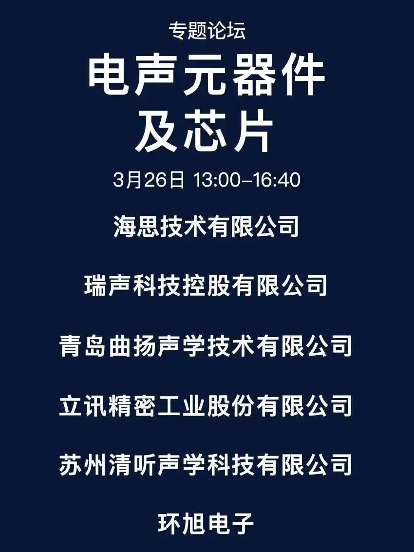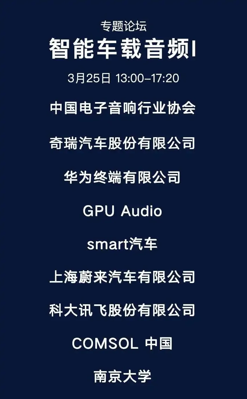 内容覆盖电子产业热点领域及方向,分别包括音频+AI、智能眼镜、智能车载音频、线上智能交互、智能耳机及辅听技术、电声元器件及芯片、融媒体音频、声音与音乐技术、语音合成。