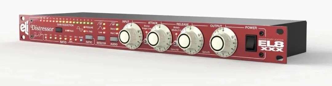 “更多的失真!”这恰当地概括了这些升级对设备声音特性的影响。这些改动使得周年纪念版Distressor在保留经典特性的同时,提供了更丰富的音色可能性。