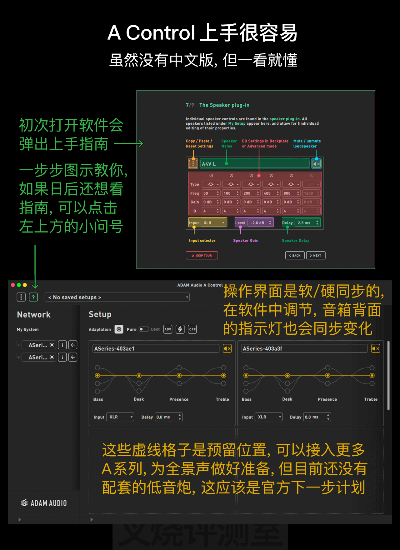 传统 MTM 监听有“双单元低频叠加”的问题,造成上一代 A77X 低频偏厚 (A77X 还有“导管风噪”问题),现在 ADAM 都解决了。
