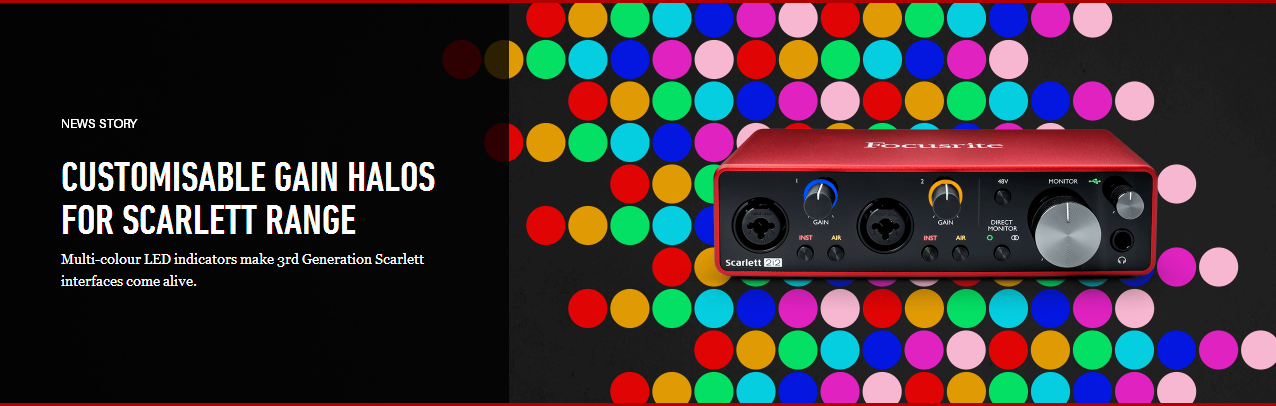Focusrite Scarlett声卡支持信号电平指示灯的颜色自定义
