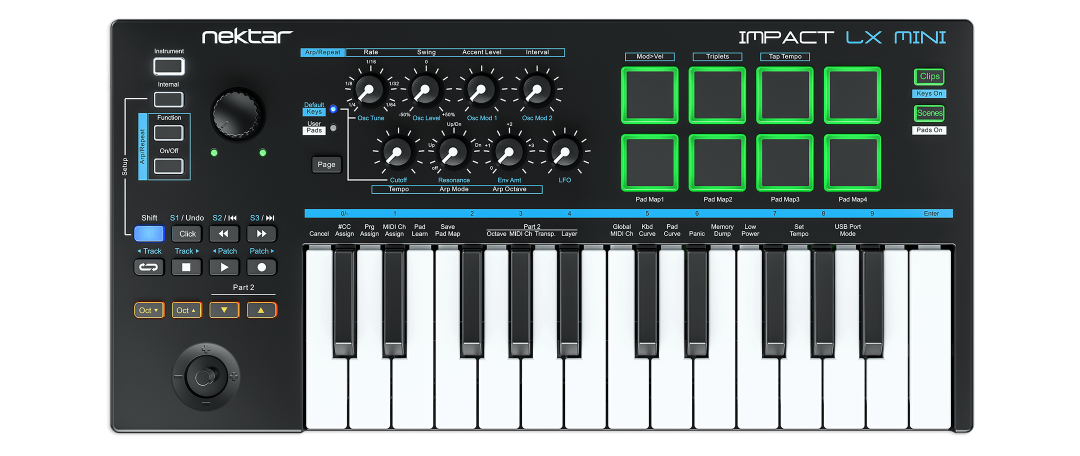 Nektar Impact LX MINI小键盘一经推出就广受音乐制作人和爱好者的关注。这款迷你小键盘不但琴键、旋钮和打击垫的做工过硬,而且功能也非常全面。配合Nektar工作站整合程序的走带功能,让个人音乐制作编曲更加高效流畅。