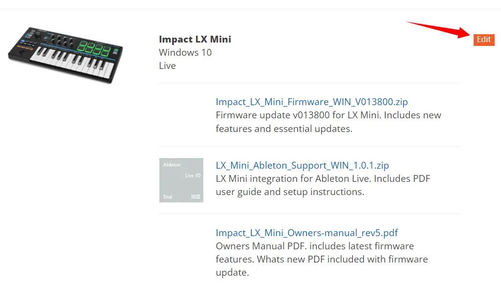 7,完成注册后,在您的用户页面下拉,就会出现已经注册的产品及相应的下载资源。您需要按自己的实际情况,选择电脑系统和音频工作站,请点击Edit按钮。