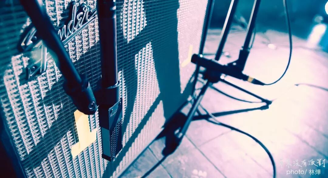 曾经到过草东演出现场的朋友也许曾经注意到,每个吉他音箱上面都摆了两支话筒,一支铝带(ribbon)、一支动圈。这样的构想首先能够让调音师根据现场状况调配使用,其二,如果在场地只有一张混音台的状况下能够分别用于外场及返听,互不干扰。