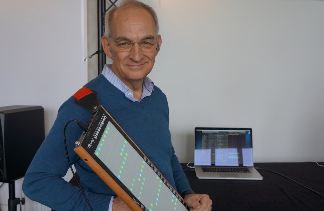 Roger Linn 大师为业内著名的乐器设计师,其设计的 LM-1 被看做是 ”第一台真正的鼓机”,最著名的作品就是连圈外人都知道的 MPC 工作站。老师傅纵横三十年,却一点也有退休的意思,彻底诠释了 “人生的意义就在于捣鼓" 。在 2014 年的时候,老师傅成为了第一批捣鼓三维设备的玩家,推出了具有 3D 感应的控制器 “LinnStrument”,$1499 的售价也为大家埋下了对于未来控制器的憧憬。