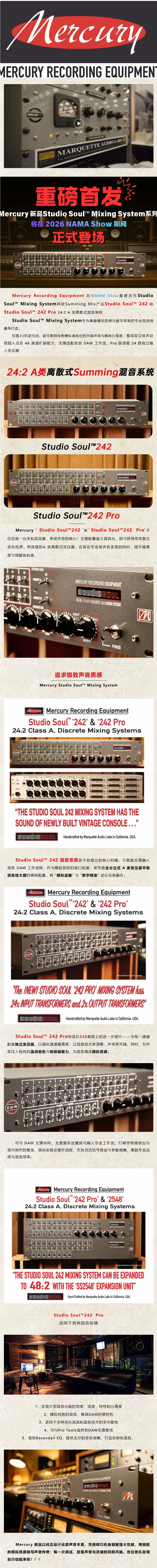 【2026 NAMM 焦点】Mercury发布 Studio Soul™242 系列Summing Mix “模拟调音台”!