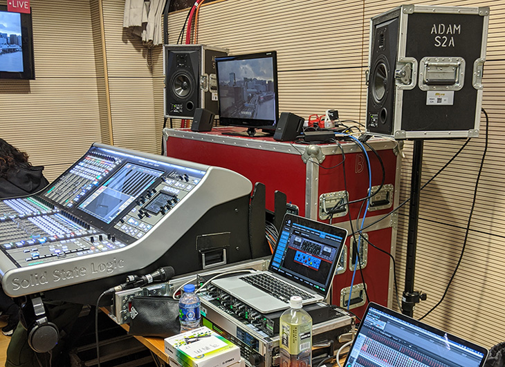 “ 我通过不同的矩阵输出分别给它们发送,这样我就可以补偿每个广播平台中的信号衰减。” Frankie Hung解释到:“ 通过使用虚拟声音检查功能,我将混音反复试听,并进行了不同的EQ和动态处理,就像在录音棚中进行母带制作一样。”
