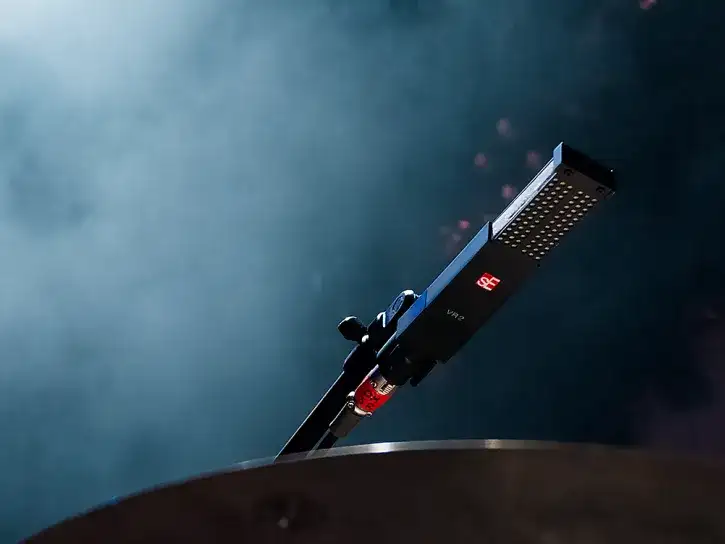 当然,用法并非刻板固定——这次录音就把 RN17 架在 overhead 位置,另加一支 VR2 悬在鼓手头顶充当 top mic。