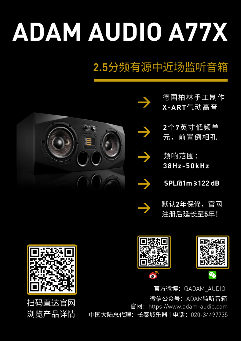 有句话叫:“没有最好的监听环境,只有最熟悉的监听环境。” 为了让更多专业音频工作者有机会在自己最熟悉的监听环境中亲测ADAM Audio工艺最精湛、技术最高端的旗舰级监听S系列,官方正式开通了“借听项目”!让您在自己的工作室内试用S系列,试听期最长2周!14天的朝夕相伴,你就会知道它是不是你的the one!在您熟悉的监听环境内试听,让耳朵告诉你真正的答案! 如何申请戳这里!