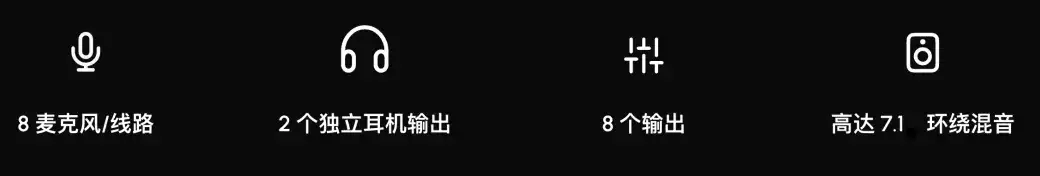 8 个麦克风/线路输入,8 个线路输出,适用于传统的录音和混音工作。