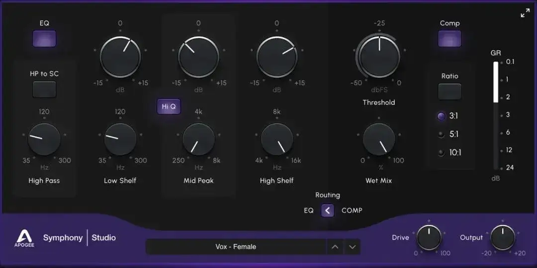 Symphony Studio配备的先进输入DSP,为您的录音注入了模拟音频的丰富韵味。通过一系列工具,如均衡、压缩和饱和度控制,以几乎零延迟的性能精准雕琢您的音轨,让您的录音轻松获得深邃的层次感、独特的个性魅力以及细腻的光泽感。 Symphony Studio 系列具备的9大特点: