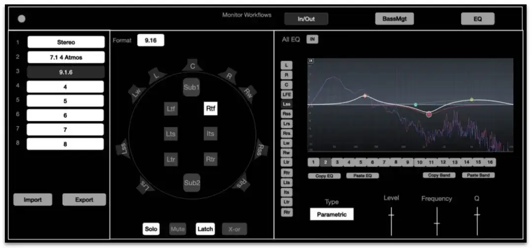 房间均衡器每个扬声器具备16可调频段,可精确定位并消除不平衡的频率