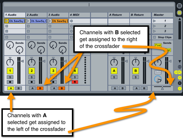 (以上是正常的 Crossfader 做法,但是在 Ableton 中相当少用)