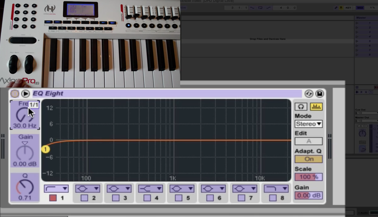4. 按下 Command + M 进行 MIDI 设置,将两个轨道 EQ8 的 frequency 旋钮映射到控制器上的旋钮、推子或者转轮。