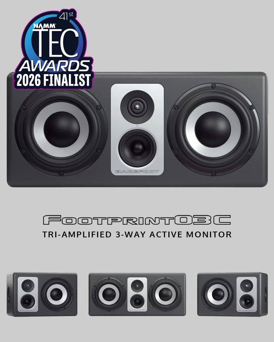 在此祝贺,Barefoot Sound年初新品Footprint 03 C入围2026年第41届NAMM TEC奖“录音室监听音箱系列”决赛