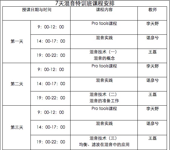 由北京德艺方文化艺术发展有限公司主办的“第十五期Allanwang高级音乐技术培训”将于2015年8月17日-8月23日期间在北京举行。培训面向社会企事业单位、职业院校教师、学生及相关行业从业人员,培训内容针对录音、混音、编曲、制作等方面进行系统讲解,欢迎您的参与!本期课程的重点是混音。