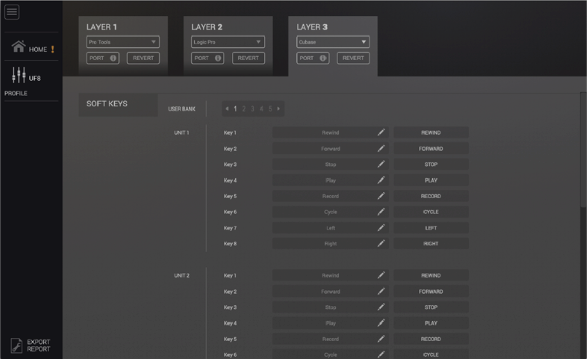UF8可以扩展为32通道控制台面,并与所有主流的数字音频工作站平台集成,适用于音乐创作、制作及混音、后期制作以及网络广播等多种应用。全新的Solid State Logic 360°控制软件管理多个控制器的配置,自定义用户密钥并在多个层之间进行数字音频工作站切换,并允许用户在多个工程文件之间进行无缝切换。