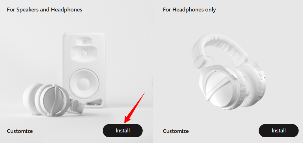 5,选择您授权相对应的软件版本,点击‘Install’按钮下载。左边为音箱+耳机的完整版本,右边是单独耳机的版本。示例中展示下载音箱+耳机的完整版本。