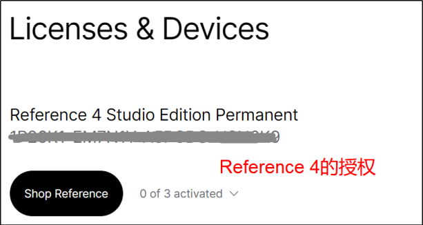 2,登录后,请查看‘Licenses & Devices’下方是否有您之前的Reference 4 Studio Edition授权。如果有,请跳至第5步操作。如果没有,请继续下一步操作。