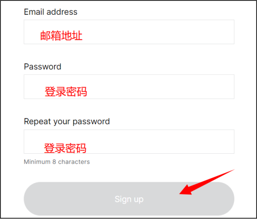 2,然后,输入您的邮箱和Sonarworks密码,密码需要输入两次(需至少8位)。然后点击‘Sign Up’按钮。