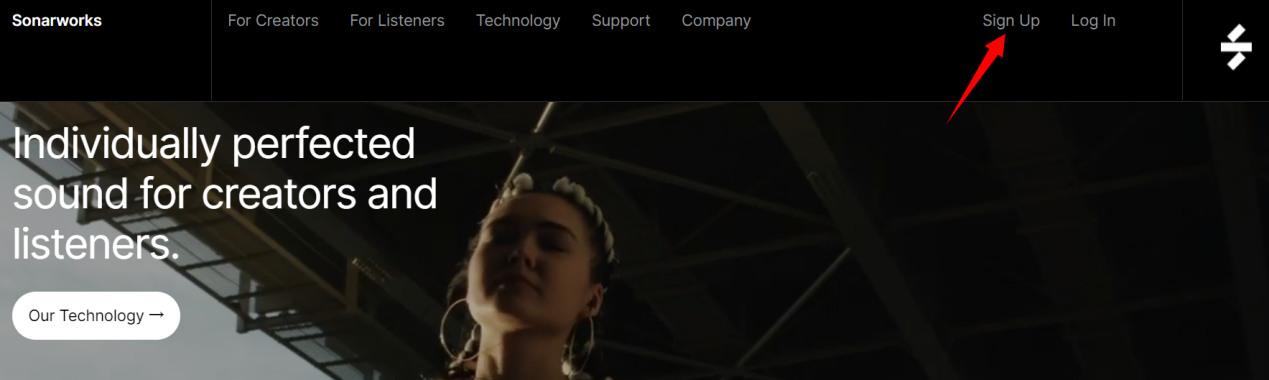 1,访问https://www.sonarworks.com/,点击右上角‘Sign Up’。