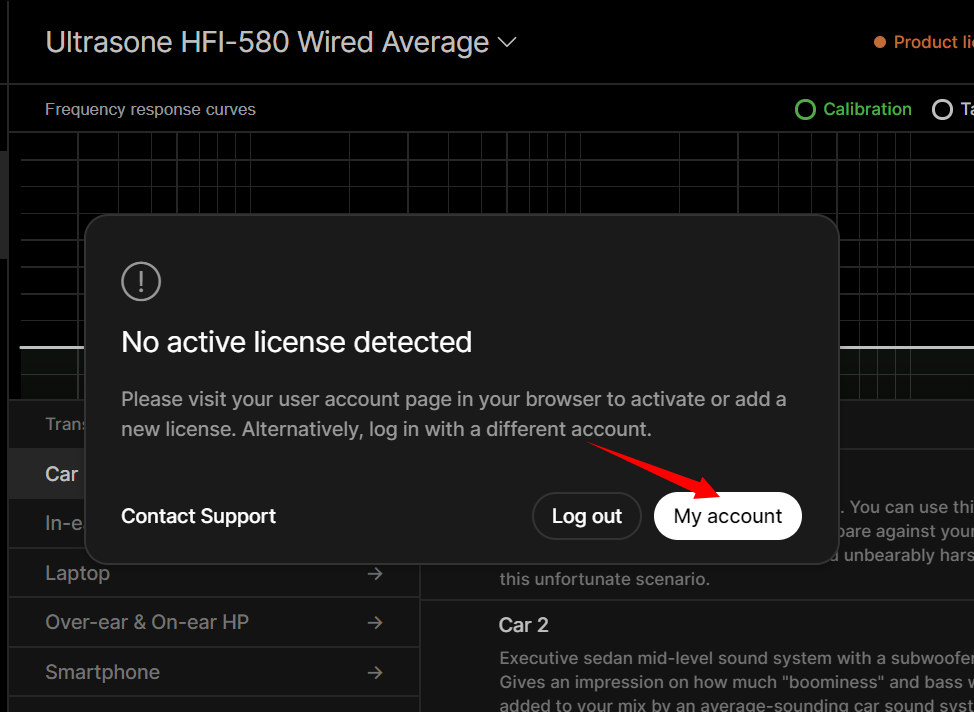 8,软件打开后,您即可正常使用SoundID Reference进行声学校正了。如果软件有如下窗口提示,请点击‘My account按钮’