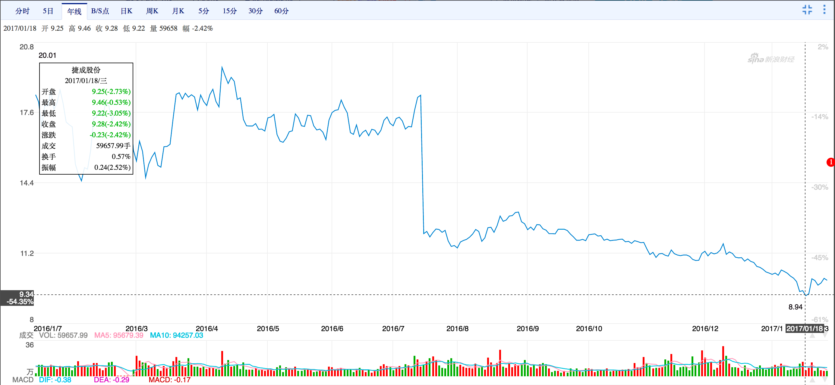 捷成世纪的股价没有太大变动,还没从去年7月的狂跌中脱身