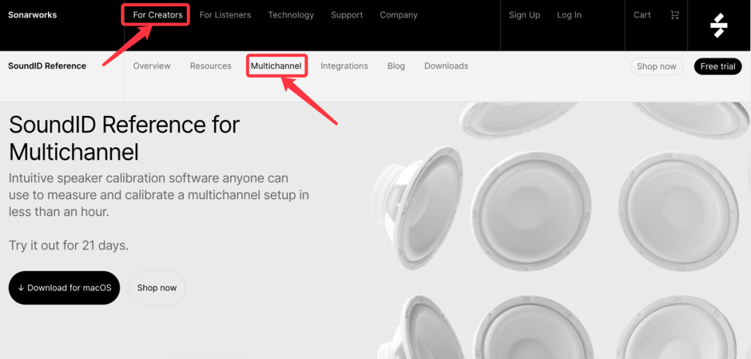 进入SoundID官网主页,按照如图所示进入多通道版本页面,具体地址如下: