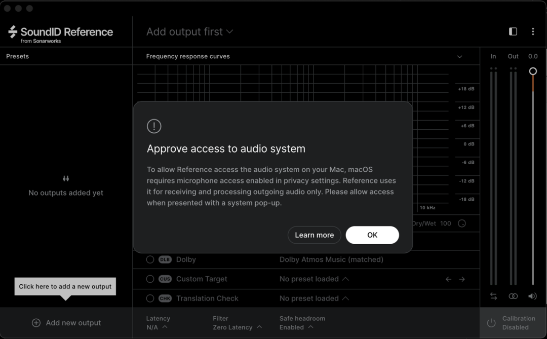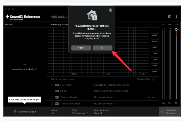 注意第一次使用时可能会出现如上图提示,请一定记住,任何关于SoundID Reference的系统请求,都要点击“好”或者“允许”。