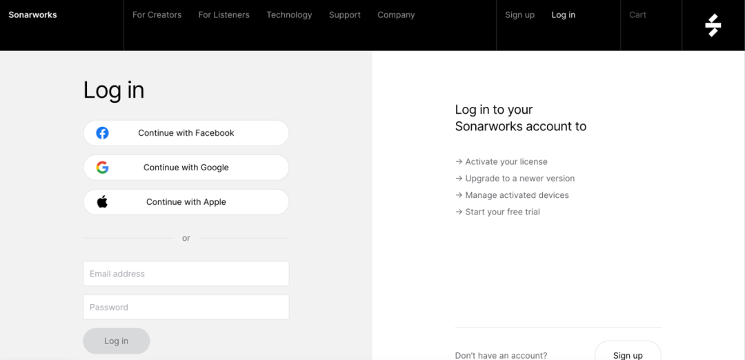 如果你还没有Sonarworks官网账号,点击最下面的Sign up进行注册。