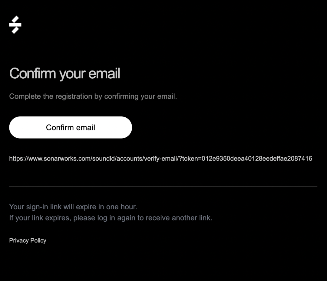 稍后会弹出如上图界面,此时请打开注册用的电子邮箱,你会收到一封来自Sonarworks的认证邮件。
