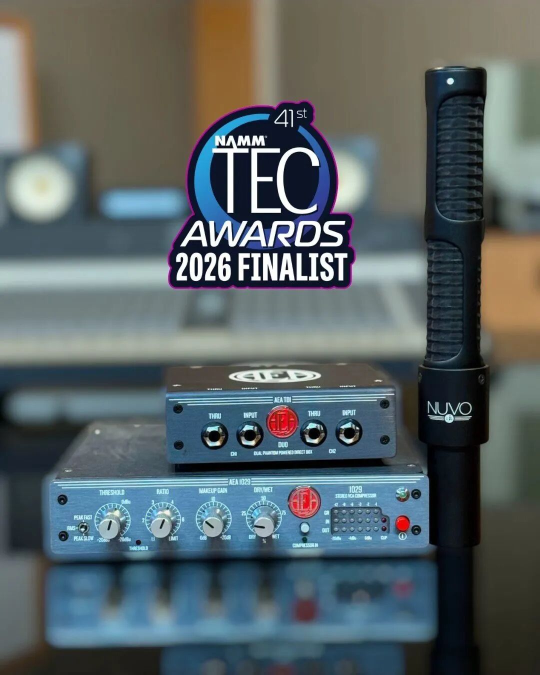 在此祝贺,AEA的N28履带话筒、TDI Duo、1029立体声VCA压缩入围2026年第41届NAMM TEC奖决赛。