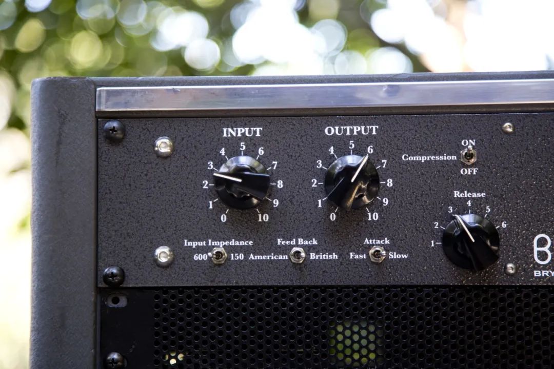 - 在输出控制旋钮的右下方是含有6个档位的步进式“Release”(释放时间)控制旋钮(尺寸也相同),它的左侧即为可以调节快慢的“Attack”(起始时间)拨档开关,“Release”(释放时间)控制旋钮的上方则为“Compression”(压缩效果)拨档开关,当它处于关闭状态时,“BG2”即会变成一台线路放大器,对信号进行处理。
