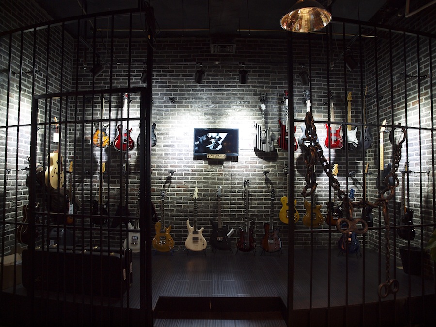 这个连门把都是吉他琴颈的房间,是奢侈乐器厅,里面有一大堆天价的尖儿货,吉他手的旅游胜地...虽然买不起,来这里饱饱眼福也不错...
