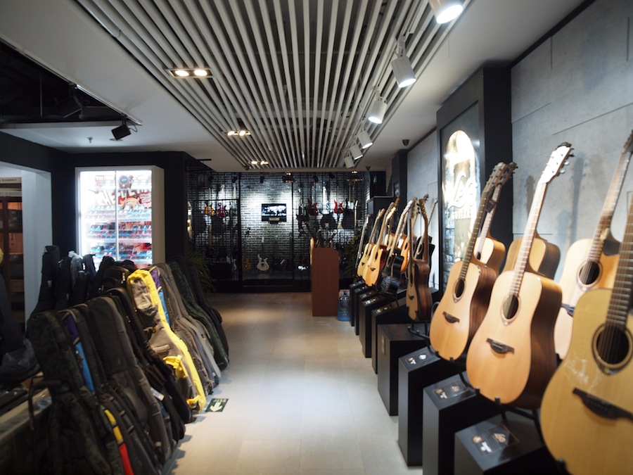 一些小细节,音乐行业禁烟有难度,这里果真能做到,员工与客户抽烟都自觉到门口。还有随处可见的温度湿度计、每个厅都有的加湿器,让体验中心保持恒温恒湿。有个涉入吉他行业的音频设备商最近对我说在这里栽了跟斗,因为做音频设备相对好维护,但吉他是家具,必须考虑好仓库与存储。