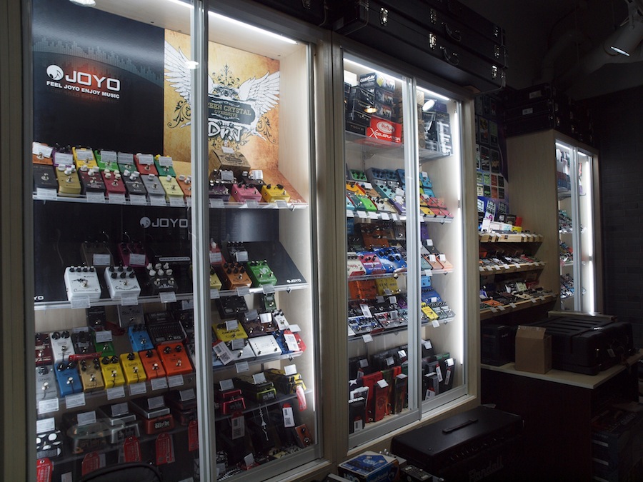 一墙的单块效果器...旁边那个本以为是冰箱,原来是吉他专用储存箱...