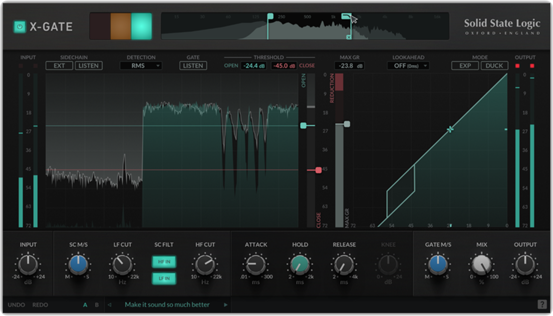 X-Gate 是一个全面且高度可视化的选通插件,灵感来自 SSL 的数字广播控制台的工作流程。 X-Gate 具有滚动波形图、中间/侧面处理选项和使用独立打开和关闭阈值的可调整滞,建立在 SSL 数字控制台设计方面的丰富经验之上。