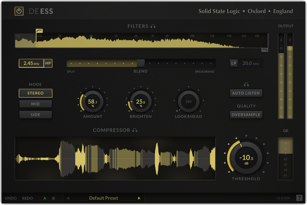 DeEss 是一种面向工作流程的校正工具,用于精确减少齿音和高频控制 - 用于减少过多的齿音和刺耳的中高频积聚,例如:人声中的“ess”和“shh”声音。